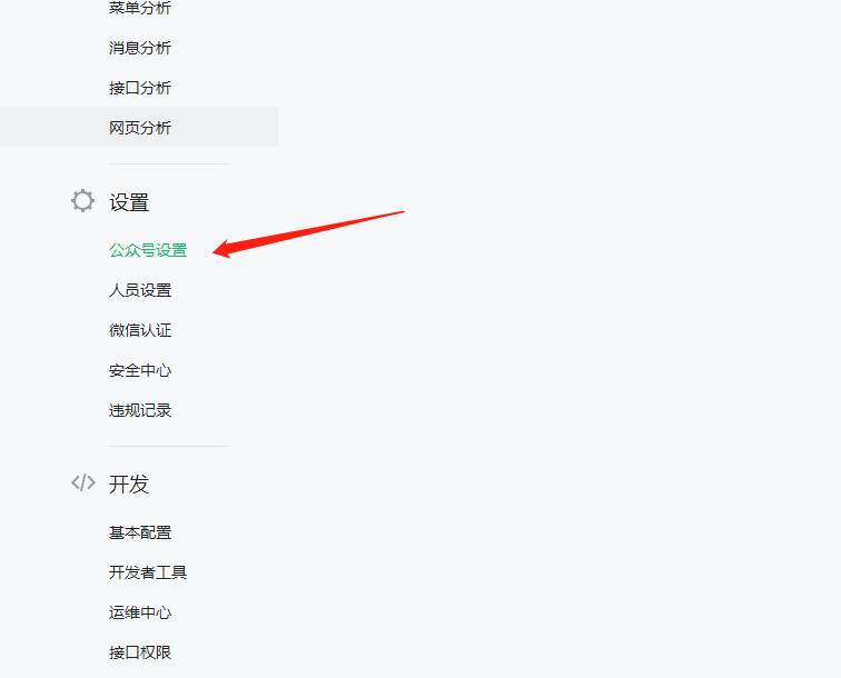 1、左側菜單 -> 公眾號設置